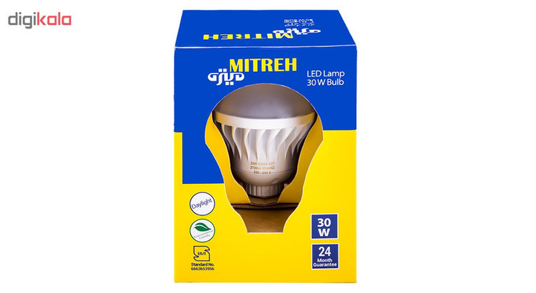 لامپ ال ای دی حبابی(Bulb Led ) یکی از محصولات شرکت رادویرانور ( میتره) است. لامپ های ال ای دی حبابی به واسطه شکا ظاهری که دارند دارای پرتاب نور مستقیم هستند و برای محیط هایی که نیاز به نمایش محصول دارند مانند میوه فروشی ها، فروشگاه ها و همچنین سوله های تولیدی مناسب هستند. ظاهر خاص این لامپ و زاویه تابش نور 135 درجه ای از دیگر ویژگی های این نوع لامپ است.طول عمر بالا یکی دیگر از ویژگی های لامپ حبابی است.توان مصرفی این لامپ حبابی 30 وات است و با این میزان توان مصرفی، نوردهی برابر با 2700 لومن دارد.لامپ های ال ای دی میتره فاقد عناصر مضری مانند جیوه و سرب بوده و دارای نشان استاندارد هستند. تمامی محصولات شرکت رادویرانور دارای خدمات پس از فروش 12 ماهه نیز می باشند. لامپ ال ای دی 30 وات حبابی میتره دارای سرپیچ E27 است. این محصول با رتبه بندی مصرف انرژی A+ در زمره محصولات با بیشترین راندمان مصرف انرژی قرار گرفته است. لامپ LED حبابی در دو رنگ آفتابی و مهتابی تولید شده و بسته به نوع کاربرد برای محیط های خانگی، اداری و صنعتی مناسب است.