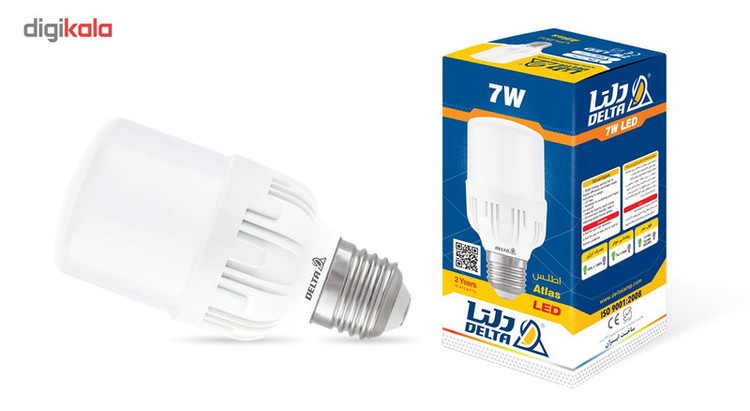 شرکت لامپ دلتا (Delta) با دو دهه فعالیت در زمینه محصولات الکترونیکی و روشنایی توانسته است با کسب استاندارد ملی ایران و ISO 9001:2008 و استاندارد CE اروپا بر کیفیت خود صحه گذاشته و انتخاب این واحد صنعتی به عنوان واحد نمونه استاندارد خود گواه کیفیت بالای محصولات دلتا است.لامپ ال.ای.دی (LED) دلتا که ملاحضه می کنید با مدل اطلس عرضه می شود. که دارای توان مصرفی 7 وات است، با توجه به قدرت بالای نور دهی و مصرف بسیار کم این محصول در رده +A قرار می گیرد.شار نوری این محصول 460 لومن بوده که توسط سازمان استاندارد اندازه گیری شده و پس از گذشت زمان و استفاده دچار افت نوری نمی شود و از عمر بسیار طولانی برخورداراست.تمامی محصولات لامپ دلتا فاقد هرگونه اشعه ماورا بنفش (UV) بوده که هیچ آسیبی به چشم و پوست وارد نمی کند.حباب این لامپ استحکام بالایی دارد و بهراحتی نمیشکند؛ ازاینرو میتوان از آن برای تامین نور اتاق کودکان و محلهایی که احتمال ضربه خوردن لامپ وجود دارد استفاده کرد.