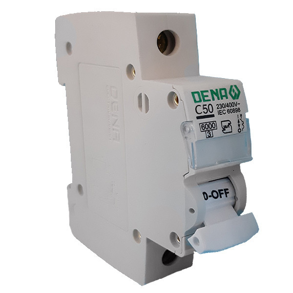 کلید مینیاتوری 50 آمپر با قدرت قطع 6000 منحنی C بهترین انتخاب برای مصارف روشنایی و خانگی و صنعتی می باشد. این کلید تحت نظارت سازمان استاندارد ایران با کد رهگیری 6961545956 در کارخانه دنا الکتریک ایرانیان (از خانواده دلند الکتریک) ساخته می شود. کیفیت ساخت و قطعات بر اساس استاندارد بین المللی IEC60898 و استاندارد ملی 2611 مورد آزمون و بررسی قرار می گیرند. کلید دنا با استفاده از دو مکانیزم حفاظتی جریان اضافه بار و نیز حفاظت در برابر جریان های اتصال کوتاه عمل حفاظت از مدار برقی زیر شاخه خود را انجام می دهد.