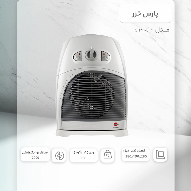 فن هیترها وسایل گرمایش سریع منزل یا محل کار هستند. بهطور مثال: صبحها وقتی به محل کار خود میرسید از زمانی که اسپیلت را روشن کنید تا زمانی که محیط گرم شود، حدود 1 ساعت زمان میبرد و در این بازه، شما باید در محیطی سرد با لباسهای سنگین و زمستانی بنشینید؛ در همین حال است که فن هیترها میتوانند کمک حال شما باشند. فن هیتر پارس خزر به صورت عمودی بوده و به دلیل ابعاد 28x19x38 سانتیمتری و وزن 3 کیلویی میتواند روی میز قرار بگیرد. فن هیتر پارس خزر به وسیله دو المنت پرقدرت با توان مصرفی 2000 وات گرما را تولید کرده و توسط فنها این حرارت را به بیرون منتقل میکند. میزان گرمای این هیتر در 6 حالت قابل تنظیم بوده و از دیگر ویژگیهای این هیتر میتوان به استفاده از آن در فصل گرما نیز اشاره کرد؛ به گونهای که شما میتوانید فقط فن این دستگاه را روشن کنید و مانند یک پنکه از آن استفاده کنید.