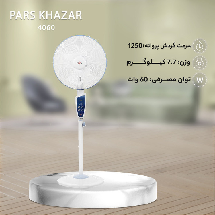 پنکه پارس خزر مدل 4060R از محصولات شرکت پارسخزر است که با طراحی زیبا و یک ریموت کنترل تولید و عرضه شده است.4060r pars قابلیت تنظیم تایمر برای بازههای زمانی متنوع را دارد که یکی از مشخصات کاربردی و قابلتوجه پنکهها به شمار میرود. علاوه بر این، قابلیت گردش افقی به کارایی و عملکرد این محصول میافزاید. پنکه پارس خزر مدل 4010r دارای سه پره پلاستیکی شفاف بوده و با توجه به قابلیت تنظیم سرعت، در صورت نیاز قادر خواهید بود سرعت آن را کاهش یا افزایش دهید. لازم به ذکر است ریموت کنترل پنکه 4060 این امکان را برای شما میسر میسازد تا علاوه بر خاموش و روشن نمودن دستگاه، تمامی قابلیتها یا تنظیمات ذکرشده یعنی تایمر، گردش افقی، و سرعت عملکرد پنکه را کنترل کنید. علاوه بر این نشانگرهای روی پایه شما را از تنظیمات فعلی دستگاه مطلع میسازد تا بتوانید از راه دور هم تنظیمات را ببینید و در صورت نیاز تغییر دهید. پایه این دستگاه قابلیت تنظیم ارتفاع دارد و در بلندترین حالت میتوان آن را یکی از چند پنکه پآیه بلند بازار به شمار آورد. این دستگاه که از شرکت داخلی پارسخزر است با توجه به طراحی زیبا، و گواهینامه استاندارد ایمنی، و همچنین نشان استاندارد اروپایی CE میتواند گزینهای مطلوب برای مصرفکنندگان مختلف در فصول گرم به شمار آید. شما می توانید از قیمت بهترین مدل پنکه پارس خزر در فروشگاه آنلاین دیجی کالا مطلع شده و خزر 4060 را خریداری کرده و درب منزل تحویل بگیرید.