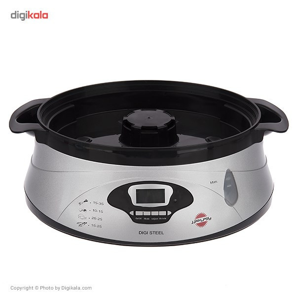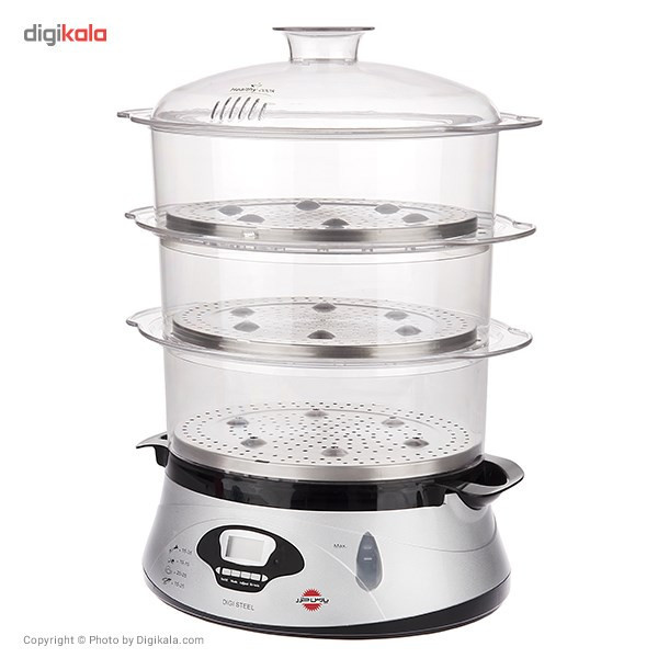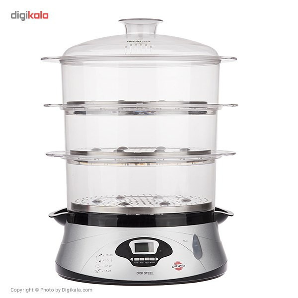 بخارپز پارس خزر مدل دیجی استیل دستگاهی مناسب برای افرادی است که می خواهند غذای سالم و بدون روغن بخورند. این دستگاه برای تهیه مخلفات کنار غذاهای گوناگون هم کاربرد دارد. تهیه هویج پخته، سبزیجات مختلف، سیب زمینی پخته و ... با این محصول بسیار آسان است. توان بالای دستگاه آب را سریع به بخار تبدیل کرده و بخار داغ از میان طبقات و مواد غذایی مختلف عبور کرده و باعث پخت آنها می شود. وزن دستگاه کم است و ظرفیت بالایی دارد، همچنین در حین فعالیت و در میانه پخت هم می توان مقدار آب باقی مانده در دستگاه را از طریق نشانگر میزان آب کنترل کرد و در صورت نیاز به دستگاه آب اضافه کرد. پنل تنظیم دستگاه شامل دکمه ها و نمایشگر در جلوی آن قرار دارد تا از طریق آن تنظیم مربوط به مواد غذایی انتخاب و تعیین شود. طبقات را می توان روی هم قرار داد و از طرفیت کامل دستگاه بهره برد و در صورتی که مواد غذایی کم هستند می توان طبقات اضافی را از روی دستگاه برداشت . این مدل مجهز به 3 سینی از جنس استیل ضدزنگ نیز هست. بخارپز پارس خزر مدل دیجی استیل ﻣﺠﻬﺰ ﺑﻪ ﺳﻴﺴﺘﻢ ﺍﻳﻤﻨﻲ ﻗﻄﻊ ﺍﺗﻮﻣﺎﺗﻴﻚ ﺩﺭ ﺻﻮﺭﺕ ﺍﺗﻤﺎﻡ ﺁﺏ ﻣﺨﺰﻥ است تا به این ترتیب دستگاه ایمن بوده و خطری ایجاد نشود. پارس خزر تولید و عرضه کننده لوازم خانگی برقی است که به خوبی شناخته شده است و گزینه ای مناسب پیش روی خریداران محسوب می شود.