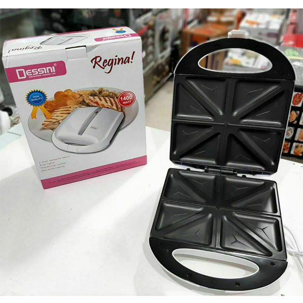 این روزها که اکثر اعضای خانوادهها درگیر کار و فعالیت هستند و فرصت کمتری برای آشپزی دارند، یک دستگاه ساندویچساز خانگی میتواند کمک زیادی بهصرفه جویی در زمان و هزینهی خانوادهها کند. دستگاههای ساندویچساز خانگی یکی از وسایلی هستند که میتوانند شما را به ضیافت فست فودها و اسنکهای خوشمزهی خانگی ببرند. ساندویچ ساز مدل1400 محصولی از شرکت « دسینی »است .این محصول با توان 1400 وات یک دستگاه پرقدرت و کاربردی محسوب می شود که با وجود تابهی نچسب، برای مصارف خانگی ساختهشده است. این ساندویچ ساز با داشتن چهار عدد خانهی مربعی شکل، میتواند هشت تکهی مثلثی شکل ساندویچ را به کاربر ارایه دهد. همچنین این ساندویچ ساز دسینی به دستگیرهی عایق حرارت برای امنیت بیشتر و نشانگر LED هم مجهز است که زمان آماده به کار دستگاه را می تواند نمایش دهد.این محصول فاقد دکمه روشن و خاموش کردن بوده و در عین حال دارای سیستم قطع خودکار است.