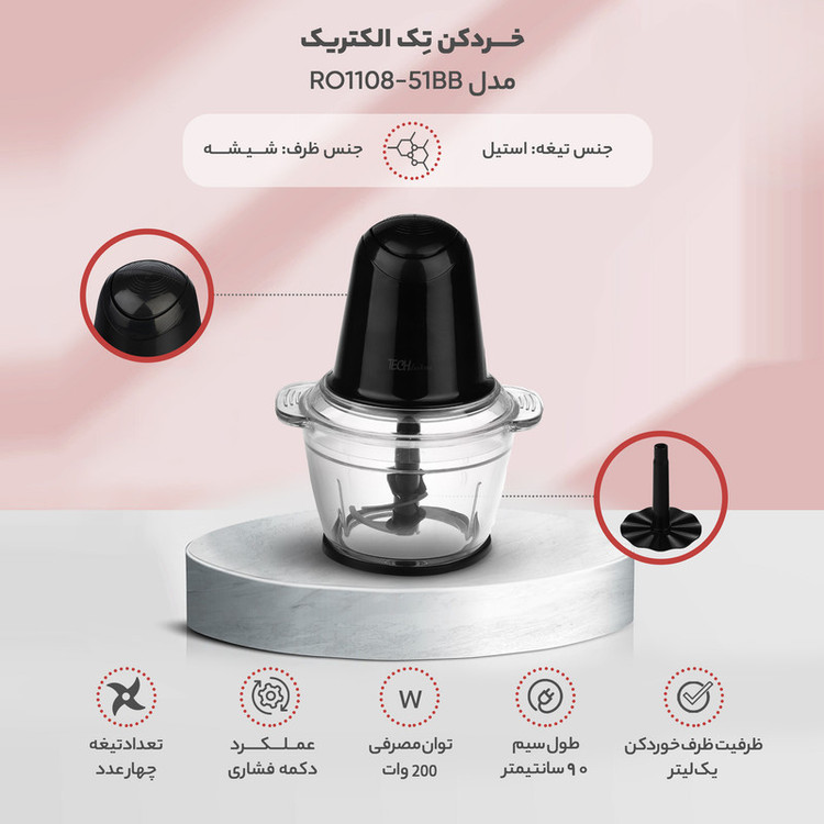 امروزه آشپزی علاوه بر نیاز به یک تفریح دوستداشتی هم تبدیل شده است. آشپزی در دنیا علاقهمندان بسیاری دارد. برای لذت بردن از آشپزیکردن نیاز به یک آشپزخانه با امکانات و تجهیزات مناسب است. هنگام آشپزی کردن وسایل بسیار زیادی نیاز میشود که بتوان یک آشپزی راحت و بدون دردسر را انجام داد. شاید یکی از سختترین قسمتهای آشپزی کردن، خردکردن مواد غذایی باشد؛ از این رو دستگاه خردکن ازجمله وسایل بسیار پر استفاده در آشپزخانه است که باعث میشود تمامی مراحل آشپزی با سرعت زیادی انجام شود. یکی از آن تجهیزات مورد نیاز هر آشپزخانه دستگاه خرد کن است. دستگاههای خردکن متنوعی در بازار است. یکی از محصولات با کیفیت و کارآمد توسط برند تک الکتریک طراحی و روانه بازار شده است. مدل RO1108-51BB با یک تیغه 4پر با قدرت بالا میتواند انواع سبزیجات و میوه را به میزان دلخواه خرد کند. این محصول با توان 200 واتی قابلیت خردکردن در دو سرعت را میتواند برای شما فراهم کند. این مدل یک ظرف شیشهای با گنجایش یک لیتر دارد. اگر به دنبال یک محصول مقرونبصرفه با کیفیت هستید، خردکن تک الکتریک مدل RO1108-51BB میتواند یک گزینه ایدهآل برای آشپزخانه شما باشد.