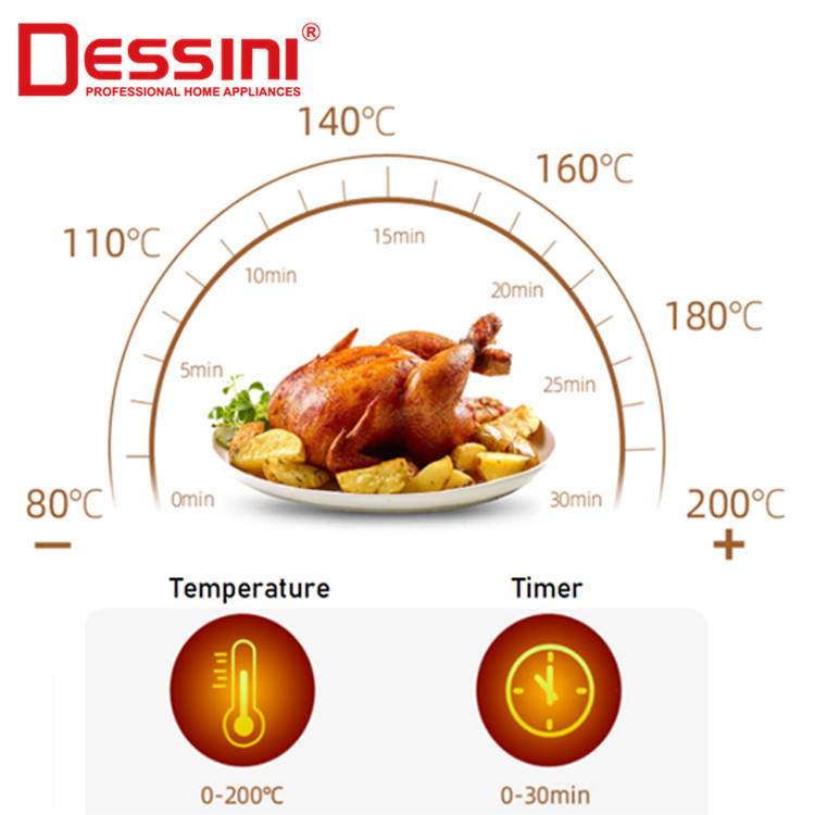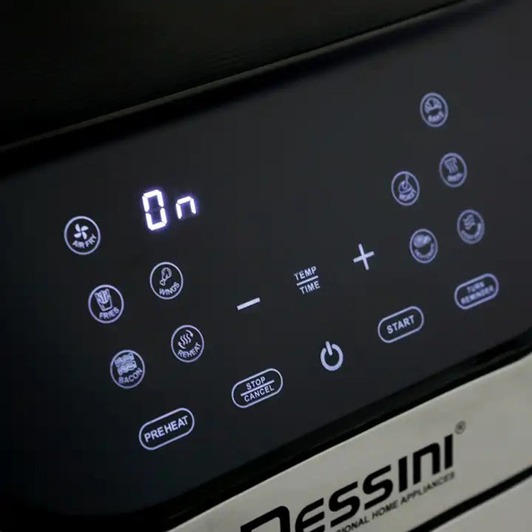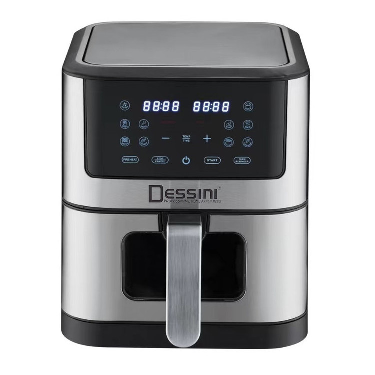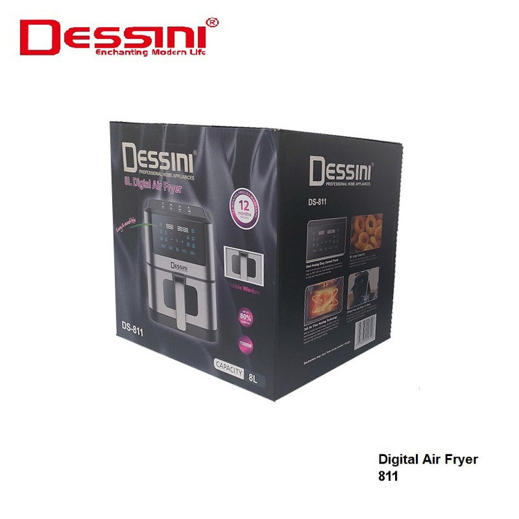سرخ کن بدون روغن دیجیتال دسینی مدل D811 با توان 1500وات و ظرفیت 8 لیتری یکی از جدیدترین سرخ کن های بدون روغن شرکت دسینی میباشد و جز سرخکن های بزرگ با ظرفیت بالا است که برای خانوار با تعداد بیشتر یا مهمانی ها بازدهی مطلوبی دارد و قابلیت تنظیم دما از 76 الی 200 درجه سانتی گراد و تنظیم زمان تا 60 دقیقه را داراست.این دستگاه قابلیت سرخ کردن انواع مواد غذایی را با کمترین کالری را دارد و با آن می توانید انواع غذاهای خوشمزه مانند مرغ سوخاری،سیب زمینی،استیک،جوجه سرخ شده، میگو،پیتزا ،ماهی و...را تهیه کنید .استفاده از این سرخ کن باعث عدم استفاده از روغن های خوراکی مضر شده که علاوه بر صرفه جویی اقتصادی خانواده ها ،برای کسانی که بیماری چربی دارند و از غذاهای پرچرب خودداری میکنند نیز بسیار مناسب می باشد.دستگاه سرخ کن رژیمی دسینی مدل DS811 از مواد سازنده بسیار عالی و با کیفیت ساخته شده است و مقاوم در برابر ضربه و حرارت ساخته شده است بطوریکه بدنه در حین کار داغ نمی شود و می توان به راحتی و ایمن آن را لمس کرد.این دستگاه مجهز به صفحه نمایش ال ای دی لمسی می باشد که کار کردن با آن بسیار آسان می باشد.دسینی شرکت ایتالیایی است که با تولید محصولات با کیفیت و متنوع در زمینه لوازم خانگی، در کشورهایی همچون ایران، ایتالیا، ترکیه و اسپانیا و...فعال است.برای جلوگیری از چسبیدن مواد غذایی هنگام سرخ شدن.ظرف آن از جنس تفلون متحرک طراحی گردیده تا شستشوی آن نیز آسان و راحت تر گردد.سیستم سرخ کن رژیمی دسینی دارای قابلیت ها و امکانات بسیار پیشرفته ای می باشد. که با استفاده از دماهای مختلف پختن غذاهای متنوع و خوشمزه را امکان پذیر می کند.این سرخ کن دارای تایمر خاموش شدن خودکار و محدوده دمایی قابل تنظیم است که می توانید بین حالات پختن، کباب کردن و برشته کردن انتخاب کرده تابیشترین گزینه را برای پخت و پز در اختیار شما قرار دهد. این مدل دارای سیستم پیش گرمایی محفظه جهت پخت اصلی بوده و دارای فناوری گردش هوای 360 درجه با سرعت توزیع یکنواخت حرارت است که موجب پخت بهتر مواد غذایی در کمترین زمان ممکن می گردد و زمان را برای شما میخرد تا به راحتی بتوانید به کارهای شخصی خود بپردازید.این مدل مجهز به پنجره ضد حرارتی است که میتوان پخت غذا را بدون باز کردن محفظه در داخل سرخ کن مشاهده و نظارت نمود.