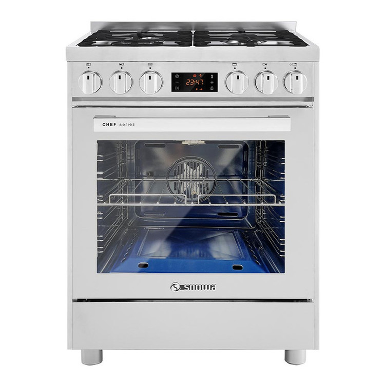 اجاق گاز 4 شعله اسنوا مدل SGC4-7121 Chef Series دارای صفحه کنترل لمسی است. ابعاد این اجاق گاز برابر 86x60x60 سانتیمتر است. این اجاق گاز 67 کیلوگرم وزن دارد. گنجایش محفظه فر در این دستگاه برابر 72 لیتر است. فر این دارای یک جوجه گردان بوده و بهر احتی و علاوه بر آن دارای یک شعله زماندار است که میتواند خیال کاربر را از سر زدن مداوم به غذا راحت کند. جنس این اجاق گاز استیل بوده و دیوارههای آن نیز استیل میباشد. این اجاق گاز فن انتقال حرارت، ترموکوبل صفر ثانیه، کلید ایمنی درب فِر، سیخ جوجه گردان، ولوم مقاوم در برابر حرارت و ولوم باکالیت دارد. این اجاق گاز از قفل کودک هم بهره میبرد. بنابراین نیاز به نگرانی برای کودکان خود هنگامی که در آشپزخانه هستند وجود ندارد. فر این اجاق گاز دارای سینی فر و شلف فر خواهد بود.