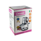 خرد کن دسینی مدل multi function food processor 5324 یک خرد کن 4 تیغه با گنجایش 4 لیتر و موتوری با قدرت 1000 وات و 3 سرعته می باشد که توانایی خرد کردن تا به حد یک دانه شکر را دارا می باشد.
