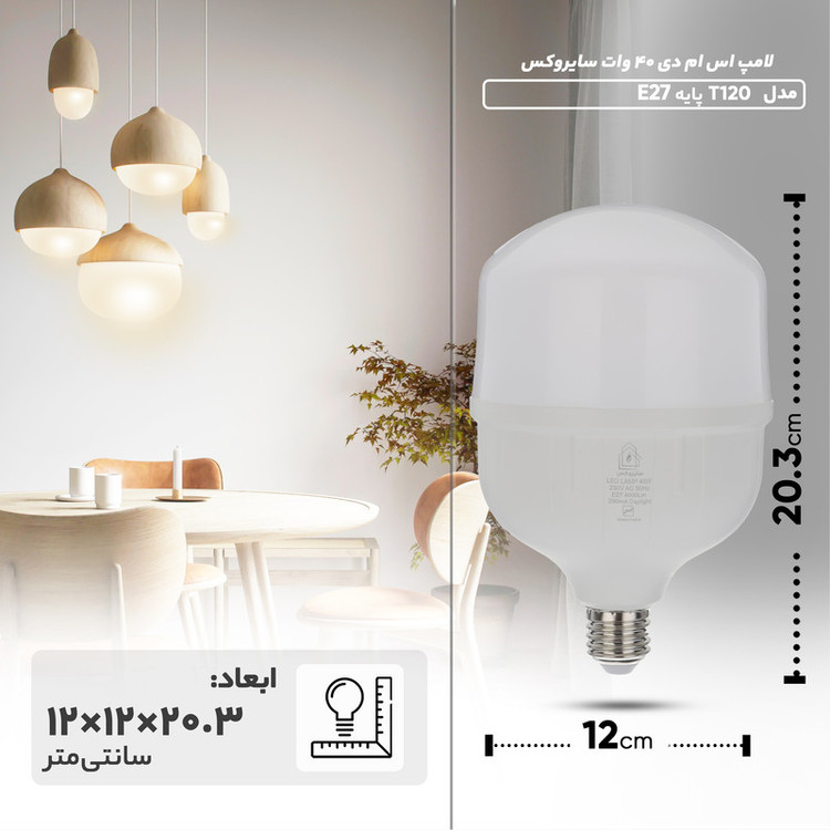 لامپ اس ام دی 40 وات سایروکس مدل T120 پایه E27