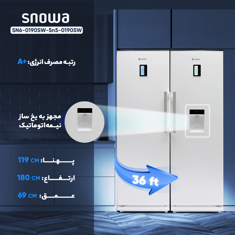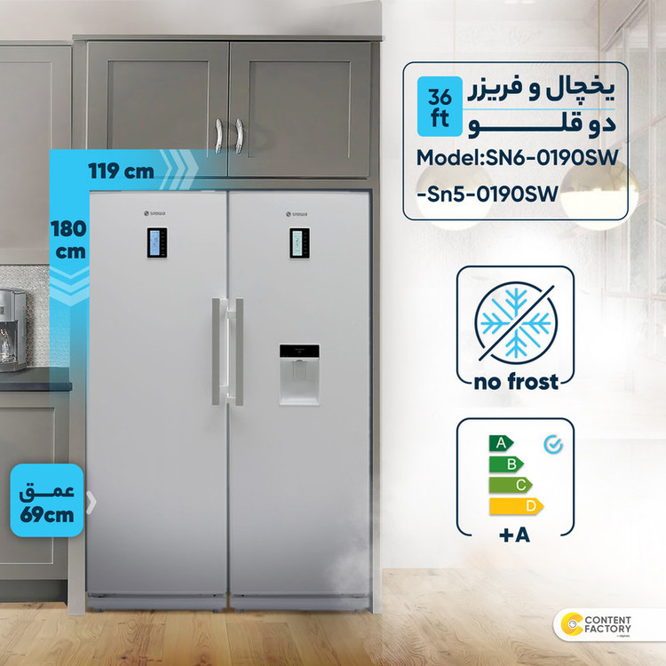 یخچال و فریزر دوقلو 36 فوت اسنوا مدل SN6-0190SW-Sn5-0190SW