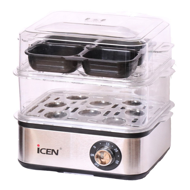 حتما براتون پیش آمده که بخواید تخم مرغ را به صورت آب پز یا املت و نیمرو سرو کنید. و یا در کنار تخم مرغ بخواید میوه یا سبزیجات را به صورت بخار پز تهیه کنید. تخم مرغ پز و بخار پز آیسن مدل 610، این امکان رو به شما می دهد که در یک زمان واحد، هم تخم مرخ ها را آب پز کنید و هم بتوانید با استفاده از سینی مخصوص، املت و نیمرو یا میوه و سبزیجات بخارپز تهیه کنید. این محصول فوق العاده دارای توان و قدرت بالا است و توانایی پخت 16 عدد تخم مرغ در دو سینی مختلف را دارد. یکی از دغدغه های تهیه تخم مرغ، میزان پخت و سازگاری با سلیقه افراد است. یا تخم مرغ پز ایسن 610، می توانید تخم مرغ عسلی، معمولی یا سفت را به انتخاب خود تهیه کنید. همچنین این محصول دارای تایمر بوده و به شما در زمان پخت و پز قدرت انتخاب بالاتری می دهد.زنگ هشدار icen 610، به محض پایان زمان پخت یا اتمام آب مخزن به صدا در آمده و شما را به یک صبحانه یا عصرانه با کیفیت دعوت می کند.
