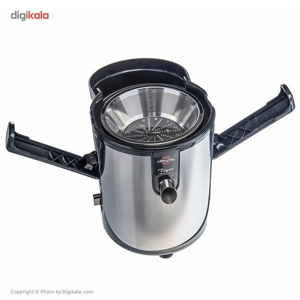 مدل تایگر یکی از قدرتمندترین و باکیفیت ترین آبمیوه گیریهای تولید شده توسط پارس خزر تا به امروز است. بخش اعظمی از بدنه این دستگاه از استیل ضد زنگ ساخته شده است و موتور 700 واتی آن خیال ما را بابت قدرت مناسب دستگاه در آبگیری سفت و سختترین میوهها راحت مینماید. برای این مدل، مخزنی جهت جمع آوری آبمیوه نیز ارائه شده است که به وسیله آن قادر خواهید بود پس از آبگیری میوهها آن را درون یخچال قرار دهید. یکی دیگر از مزیتهای این مدل دهانه ورودی نسبتا بزرگش با قطر 75 میلی متر است که راحتی فوقالعاده ای را در هنگام کار با آن ایجاد میکند. به لطف این دهانه بزرگ قادر خواهید بود تا انواع میوهها را با کمترین تعداد برش و یا حتی به صورت کامل درون دستگاه بی اندازید.