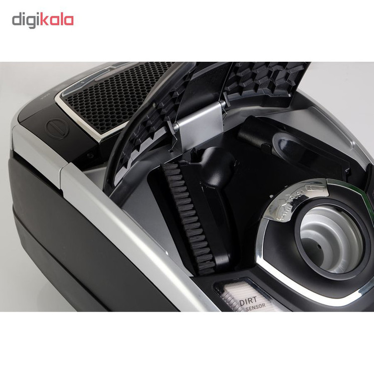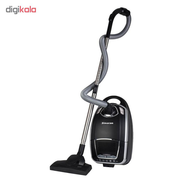 جارو برقی دیجیتالی سیماران مدل SVC - 437 دارای طراحی و رنگ بدنه بسیار زیبا است که با زدودن هرگونه گرد و خاک از محیط، تمیزی و بهداشت را برای خانه شما به ارمغان می آورد. این جارو برقی مجهز به کیسه دائمی به ظرفیت 4 لیتر می باشد که امکان استفاده طولانـی مدت از دستگاه را بدون نیاز به خالی کردن کیسه فراهم می کند . فیلتر ضد آلــــرژی HEPA) ) هپا تعبیه شده در قسمت پشتی جارو برقی دارای قابلیت جذب 99.5 درصدی ذرات می باشد و از توزیع گرد و غبار در هوای خروجی از دستگاه جلوگیری می کند، این فیلتر قابل جدا شدن از بدنه بوده و می توان پس از مدتی آن را تعویض نمود. لوله خرطومی جارو برقی دارای انعطاف پذیری بالایی بوده و به راحتی خم می شود و توسط رابط زانویی به جارو برقی متصل می گردد. این جارو برقی دارای قابلیت کنترل سرعت الکترونیکی است و این امکان را فراهم می سازد که برای مکان های مختلف قدرت های مختلف مکش را به راحتی انتخاب کنید ، همچنین دارای لوله تلسکوپی فلزی بسیار مقاوم و محکم است کـه ارتفاع آن قابل تنظیم می باشد و این دستگاه مجهز به سه سری مختلف می باشد . دستگاه دارای چرخ های بسیار روانی است که دارای قابلیت چرخش 360 درجه بوده و حرکت و جابجایی جارو را بسیار راحت می نماید.