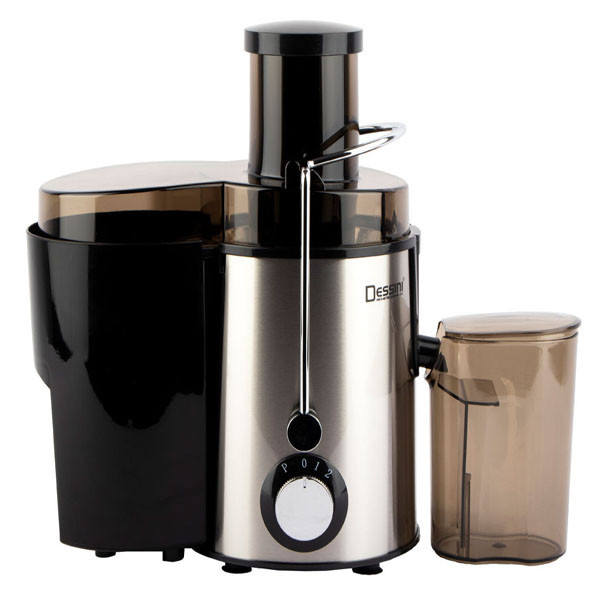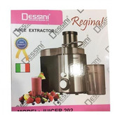 آبمیوه گیری تک کاره دسینی مدل 202 دستگاهی با نمای ظاهری زیبا و کارآمد است که با کیفیت و کارایی مناسبی تولید و به بازار عرضه شده. این دستگاه به موتور حرفه ای قدرتمند و دو سرعت تجهیز شده و می تواند به آسانی میوه های سفتی همچون (سیب، هویج، هلو و...) و نرمی همانند ( هندوانه، توت فرنگی، انگور، طالبی و... ) را آبگیری نمود. انتخاب سرعت مناسب و پالس لحظه ای با استفاده از ولوم چرخشی که بر روی بدنه تعبیه گردیده، امکانپذیر می باشد. در زیر آب میوه گیری Dessini 202 پایه های پلاستیکی قرار گرفته که مانع از افتادن دستگاه در حین کار می گردد. همچنین به سیستم قفل ایمنی نیز مجهز گردیده و در صورت جای نگرفتن درست قطعات، موتور روشن نخواهد شد. تمامی قطعات و لوازم جانبی آن نیز قابل جدا شدن می باشد و برای سهولت در انجام کار می توان برای شست و شو آنها از ماشین ظرفشویی نیز استفاده نمود.این محصول مونتاژ چین است.