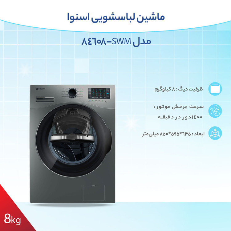 ماشین لباسشویی اسنوا مدل SWM-84608 ظرفیت 8 کیلوگرم