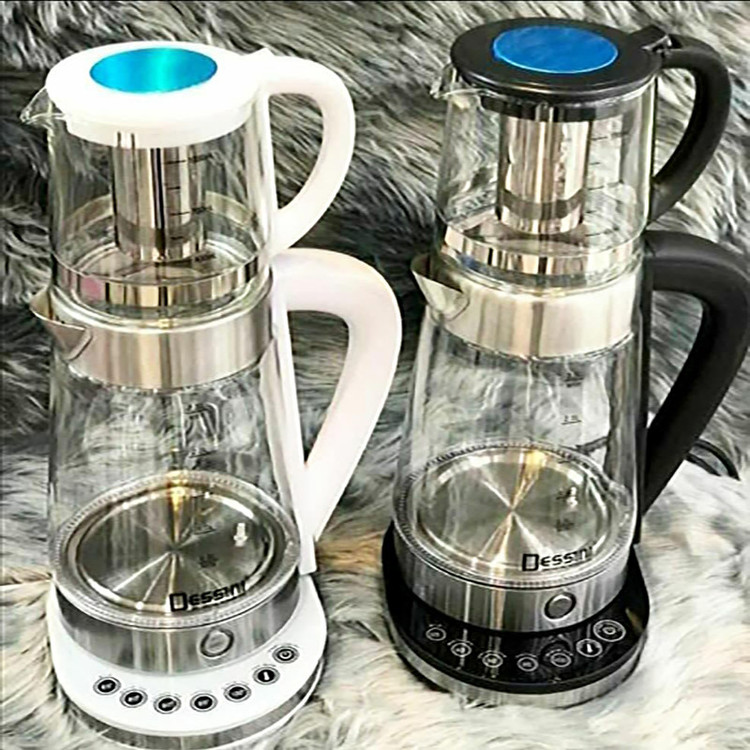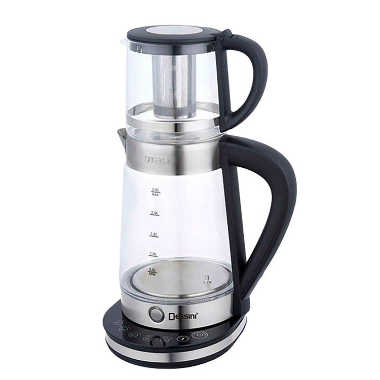 چای ساز دسینی مدل KD-3003 دستگاهی منحصر به فرد و کاربردی است که تهیه آب جوش و چای را به سرعت و در کمترین زمان، ممکن می سازد. این محصول متشکل از سه بخش قوری، کتری و پایه است، بطوریکه قوری و کتری بر روی هم، قرار می گیرند. در طراحی چای ساز Dessini KD 3003 از ترکیب شیشه، فلز و پلاستیک مقاوم در برابر حرارت استفاده شده و کتری با هر بار پر شدن امکان تهیه آب جوش به میزان 2.5 لیتر را فراهم میکند. لازم به توضیح است، کتری با بهره گیری از توان حرارتی بالا، ظرف مدت کمی آب را به دمای جوش می رساند، سپس میزان مصرف را کم کرده و آب را در حالت گرم نگهدارنده قرار می دهد و بدین ترتیب چای درون قوری با حفظ طعم و رنگ، به آرامی دم خواهد کشید. قوری از جنس شیشه با ظرفیت 1 لیتر به این دستگاه اختصاص داده شده و در داخل آن فیلتری فلزی جای گرفته که مانع از خروج تفاله چای می گردد. همچنین قرارگیری کتری بر روی پایه از هر زاویه ای، استفاده از آن را برای افراد راست و یا چپ دست آسانتر کرده است. دسینی ( Dessini ) شرکت ایتالیایی است که با تولید محصولات با کیفیت و متنوع در زمینه لوازم خانگی، نقش بسزایی را در بازار داخل و خارج از کشور ایفا می کند. گفتنی است، بسیاری از کالاهای این برند در کشورهایی همچون ایران، ایتالیا، ترکیه و اسپانیا با بهترین کیفیت و متریال نیز ساخته و عرضه می شوند.