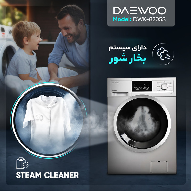 ماشین لباسشویی دوو مدل DWK-8205S ظرفیت 8 کیلوگرم