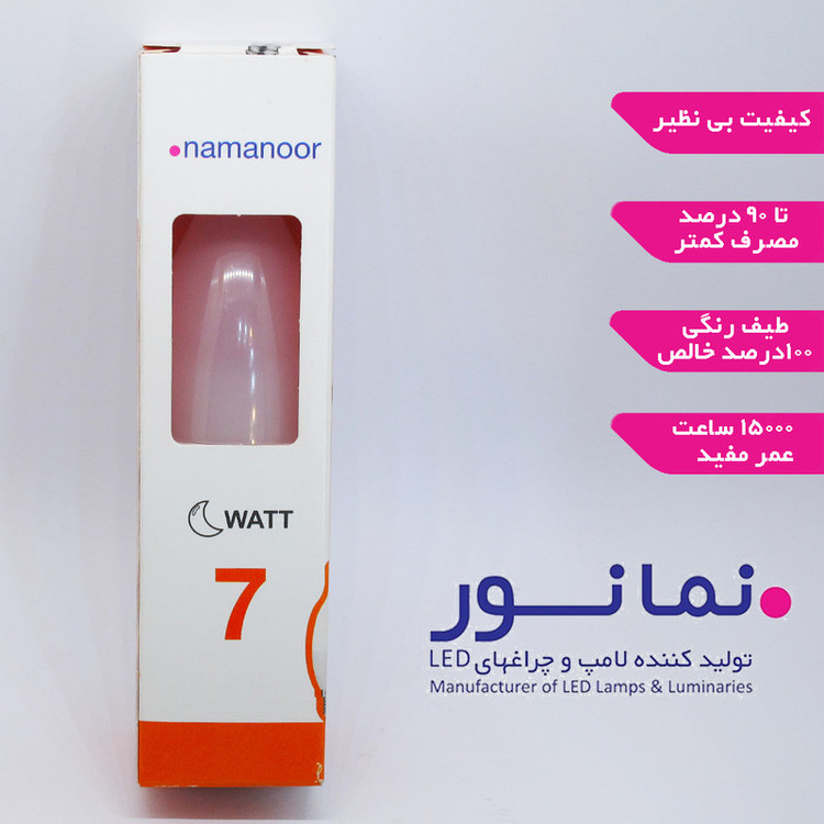 لامپ ال ای دی 7 وات نمانور مدل اشکی با ردۀ مصرف انرژی A+ و نوردهی بسیار مناسب یکی از بهترین گزینه ها برای نصب روی انواع لوستر و چراغهای تزیینی است. این لامپ با کیفیت که دارای علامت استاندارد ایران است، دارای زاویه تابش 180 درجه ای و عمر مفید 15 هزار ساعتی است که در نوع خود فوق العاده محسوب می شود. همچنین، در کنار توان 7 واتی، اندازۀ فیزیکی این لامپ اشکی نیز طبق استانداردهای جهانی بوده و تمام این موارد لامپ ال ای دی نمانور مدل اشکی را تبدیل به یک انتخاب هوشمندانه برای مصرف کننده کرده است. از دیگر مشخصات اصلی این لامپ ال ای دی میتوان به عدم انتشار پرتوهای زیانآور ماورای بنفش (UV) و عدم وجود جیوه در آن اشاره کرد که همین موضوع باعث شده این لامپ هیچگونه آسیب و آلودگی برای محیط زیست نداشته باشد. لامپ ال ای دی نمانور مدل اشکی میتواند روشنایی خوبی معادل یک لامپ 60 وات معمولی (تنها با مصرف 7 وات) داشته باشد. این لامپ اشکی، دارای کمترین میزان تولید گرما بوده و از این جهت هم باعث بالا تر رفتن طول عمر چیپ داخلی خود شده است و هم از رنگ پریدگی شید لوستر در طولانی مدت جلوگیری خواهد کرد. از مشخصات بارز محصولات نمانور، میتوان به طول عمر بالا، مصرف انرژی پایین، و مناسب بودن برای محیط زیست (بدون هیچگونه مواد مضر )، و همچنین عدم انتشار هرگونه پرتو خطرناک اشاره نمود. برند نمانور یکی از خوشنام ترین و شناخته شده ترین برندهای ایرانی در زمینۀ تولید لامپهای ال ای دی است. این لامپ دارای نشان ملی استاندارد به همراه شماره ثبت بوده که همین موضوع گواه کیفیت بالای آن در مقایسه با سایر رقبای متفرقه به شمار می رود.