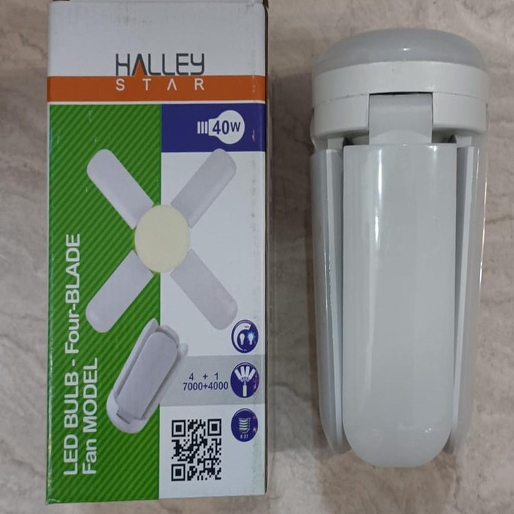 لامپ 40 وات چهار پره هالی استار با قابلیت باز و بسته شدن پره ها و قابلیت پخش عالی و تنظیم زاویه نور که این مدل در قسمت وسط لامپ که دایره ای شکل است دارای نور نچرال (آفتابی) و چهار پره آن دارای نور مهتابی (سفید) است که ترکیب این دو نور یک نور استاندارد می دهد که خستگی و کسالت ایجاد نمی کند ، و با توجه به کیفیت عالی این برند لامپی مناسب برای همه مکان ها می باشد .