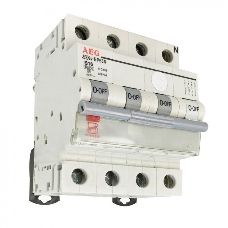 فیوز مینیاتوری سه فاز 16 آمپر آ ا گ مدل EP63N کد B16 بسته 3 عددی