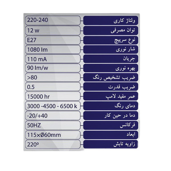 لامپ ال ای دی 12 وات مدل حبابی پایه E27