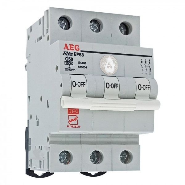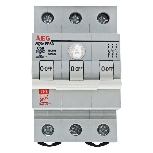 فیوز مینیاتوری سه فاز 50 آمپر آ ا گ مدل EP63 کد C50 بسته 4 عددی