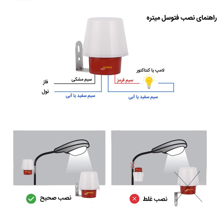 توجه نمایید فتوسل میتره جهت راه اندازی بارهای مقاومتی همچون لامپ رشته ای طراحی شده است. جهت راه اندازی بارهای سلفی و خازنی همچون درایور ها و لامپ های ال ای دی به دلیل جریان بالا در هنگام راه اندازی از رله یا کنتاکتور خارجی مناسب استفاده شود.