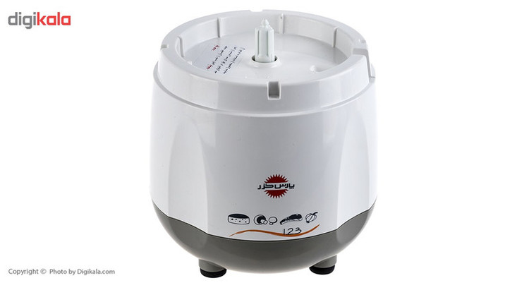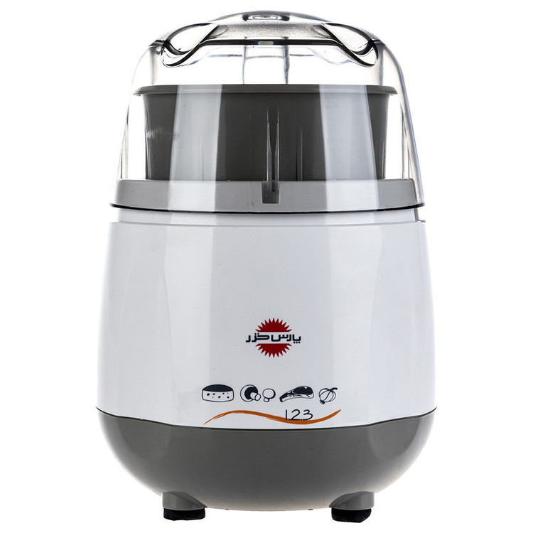خردکن پارس خزر مدل GR-123P دستگاه کوچک ولی پراستفاده برای آشپز است. این دستگاه با توان بالایی که دارد میتواند هر چیزی را خرد کند. از قدیم دستگاههای اینچنینی به یکدو سه معروف بودند و خردکن پارس خزر مدل GR-123P در نام مدل خود نیز این سابقه را لحاظ کرده و تنها در سه بار فشار روی دستگاه (بهصورت دکمه) و با سه گردش مواد غذایی درشت را خرد میکند. جمعوجور بودن، راحتی کار، ایمنی و عملکرد قوی آن، همراه باقیمتی مناسب، خردکن پارس خزر را به یک دستگاه محبوب تبدیل کرده است. پایههای ضد لغزش این دستگاه مانع از حرکت و جابجایی در حین فعالیت میشود. رنگ بدنه این دستگاه از دو قسمت تشکیلشده که در قسمت زیرین خاکستری و در میانه سفیدرنگ است. پارس خزر از تولید و عرضهکنندگان بزرگ و مهم کشور است که سالهاست درزمینه ی لوازمخانگی برقی کوچک و بزرگ میباشد.