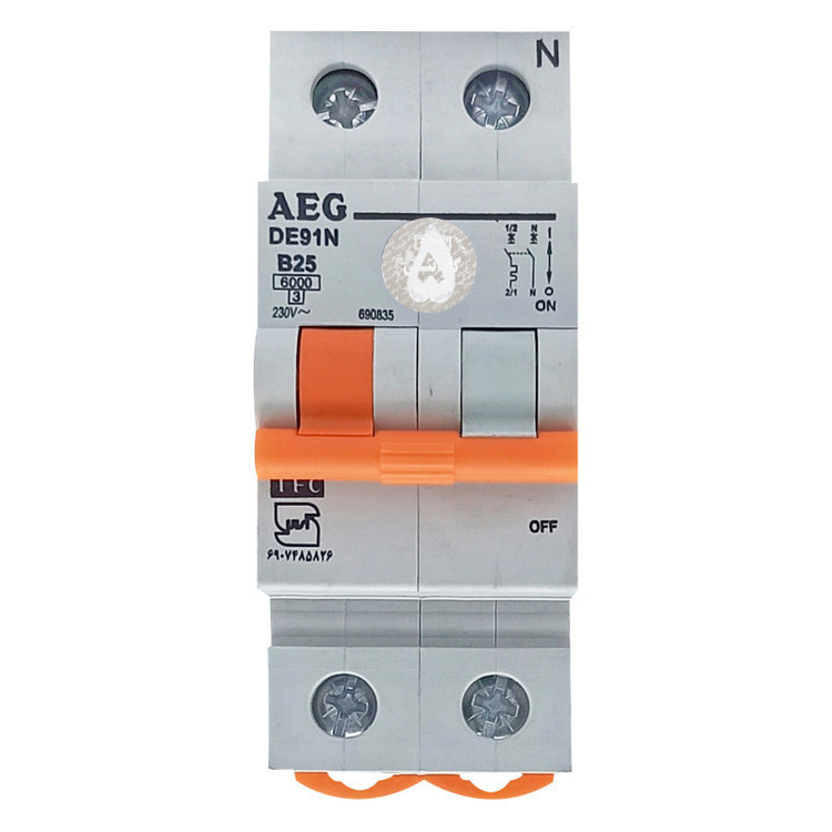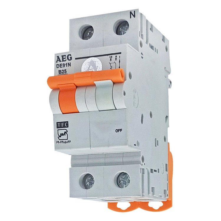 کلید مینیاتوری تک فاز و نول 25 آمپر آ ا گ مدل DE91N کد B25 بسته 6 عددی