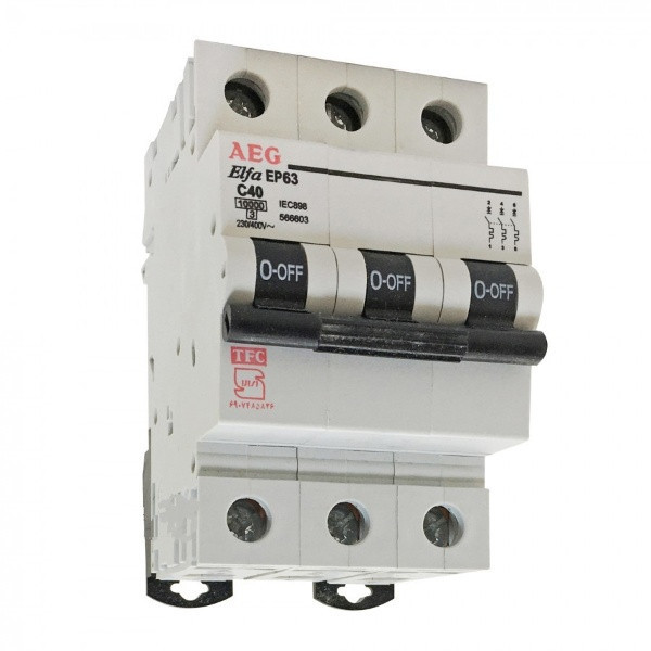فیوز مینیاتوری سه فاز 40 آمپر آ ا گ مدل EP63 کد C40 بسته 4 عددی