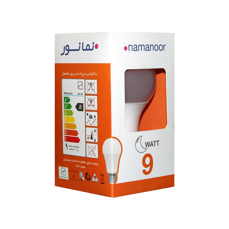 لامپهای LED حبابی نمانور، 9 وات در بسته چهار عددی و با نشان تجاری معتبر، با صرفه عالی، رده مصرف انرژی A+، طول عمر 15000 ساعت، ولتاژ 220-240 ولت، پایه E27، میزان روشنایی 855 لومن در اختیار شما قرار میگیرد.