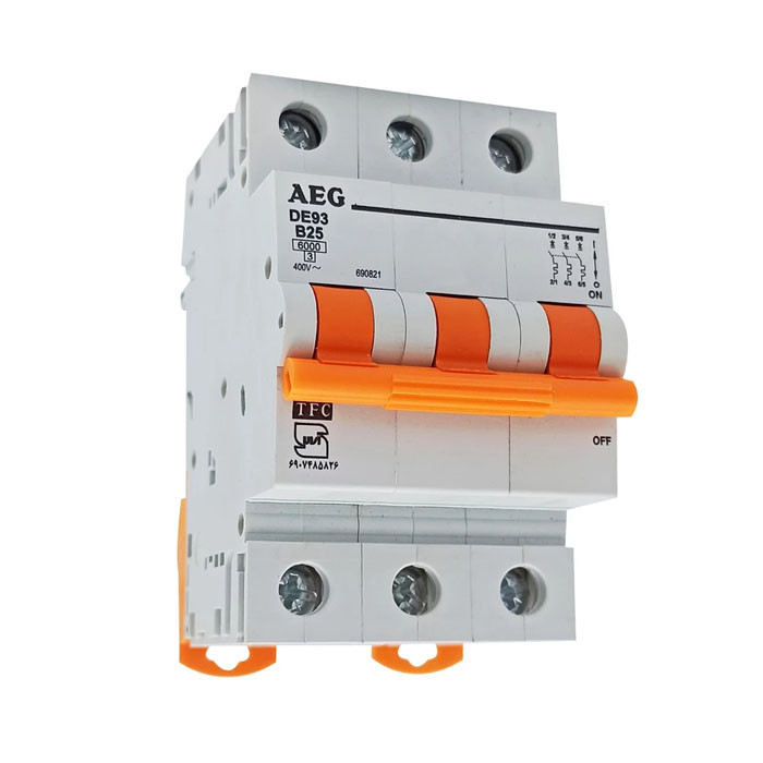 سایر توضیحات: کليد مينياتوري سه فاز DE93 B25 ، تندکار (تیپ B) - جریان نامی: 25 آمپر - قدرت قطع جریان اتصال کوتاه: 6 کیلو آمپر