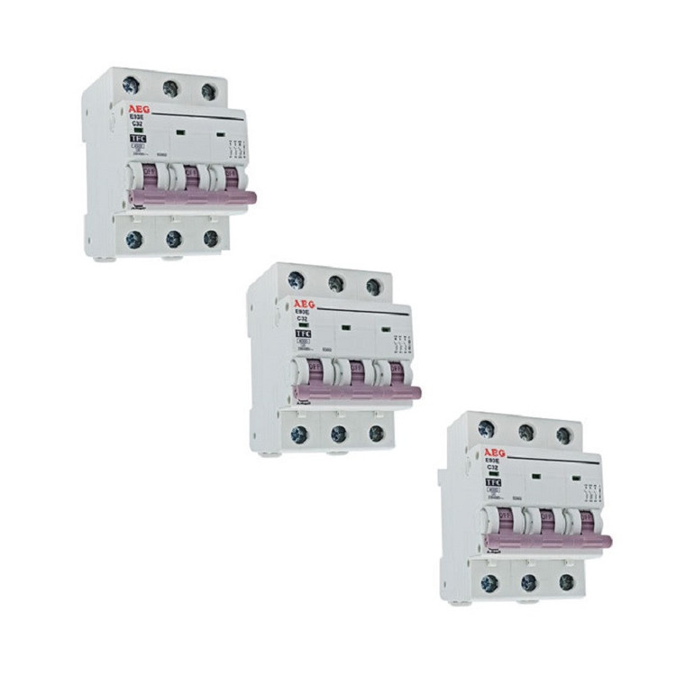 فیوز مینیاتوری سه فاز 32 آمپر آ ا گ مدل E93E-B32 مجموعه 3 عددی