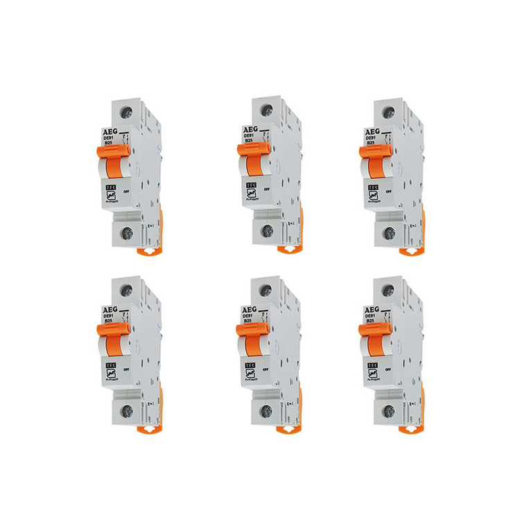 کلید مینیاتوری تکفاز 20 آمپر آ ا گ DE91- نوع کلید: تند کار (تیپ B) - جریان نامی: 20 آمپر - قدرت قطع جریان اتصال کوتاه: 6 کیلو آمپر - ولتاژ نامی: تک فاز 230 ولت - حفاظت اضافه بار (عبور جریانی بیش از جریان نامی) و اتصال کوتاه (اتصال فاز و نول) - دمای کارکزد: 5- تا 40 درجهی سانتیگراد - درجهی حفاظت رطوبتی IP20 - قابل نصب روی ریلهای 35 میلیمتری (DIN RAIL)
