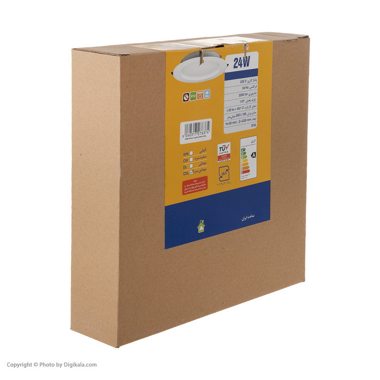 نسل جدید چراغ ال ای دی بَک لایت افراتاب با بدنه آلومینیومی ، چراغ گرد ال ای دی 24 وات سقفی توکار میباشد. در تولید این چراغ از فناوری SMD استفاده شده است. این چراغ با شار نوری فوق العاده 2300 لومن از محصولات Super Lumen سوپر لومن افراتاب می باشد. قابل نصب در برش 19.5-20 سانتی متر میباشد. زاویه تابش این چراغ 110 درجه میباشد.
