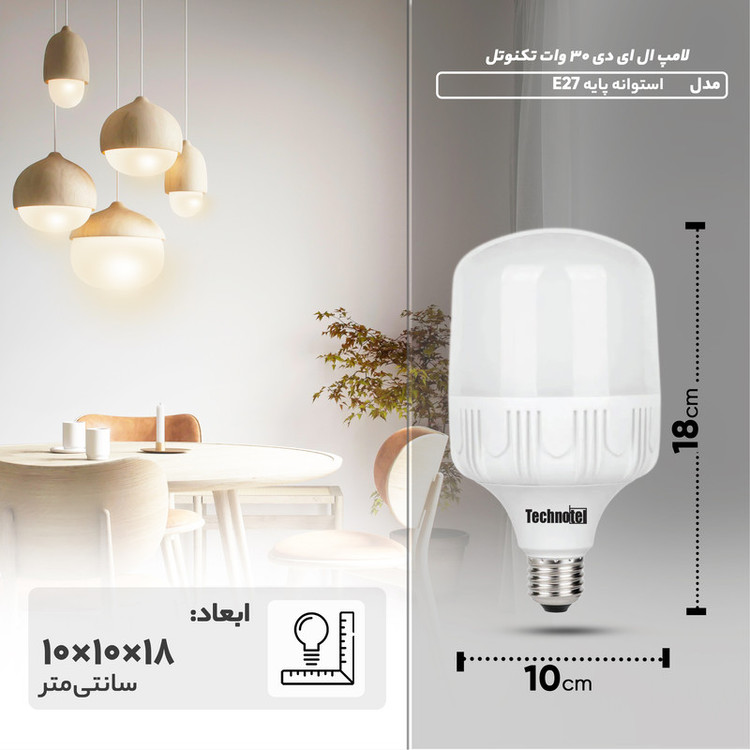 لامپ ال ای دی 30 وات تکنوتل مدل استوانه پایه E27